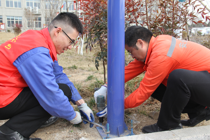 哪里有需要,哪里就有“党员志愿服务”的足迹;哪里有困难,哪里就有“党员志愿服务”的智慧。党员志愿者按照工作任务分工划分为两组,一组志愿者对厂区22套路灯底座、灯头支臂进行了全面检查,对锈蚀部位刷漆维护,并对松动的螺丝进行加固,有效增强路灯各部件的防风能力;另外一组志愿者深入生产区,对13台冷却设备进行全方位“把脉”,随着气温逐渐升高,为有效提升设备运行安全,党员志愿者们自制工具对设备水垢进行清理清除,同时对连接管路进行了全面检查维护,设备的稳定性和冷却能力都得到了大幅提升。