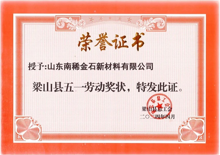 [喜报]南稀金石公司喜获梁山县“五一劳动奖状”